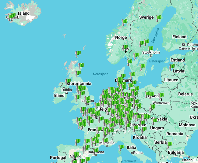 Stadig flere stasjoner i drift i Europa. Kilde: TÜV.